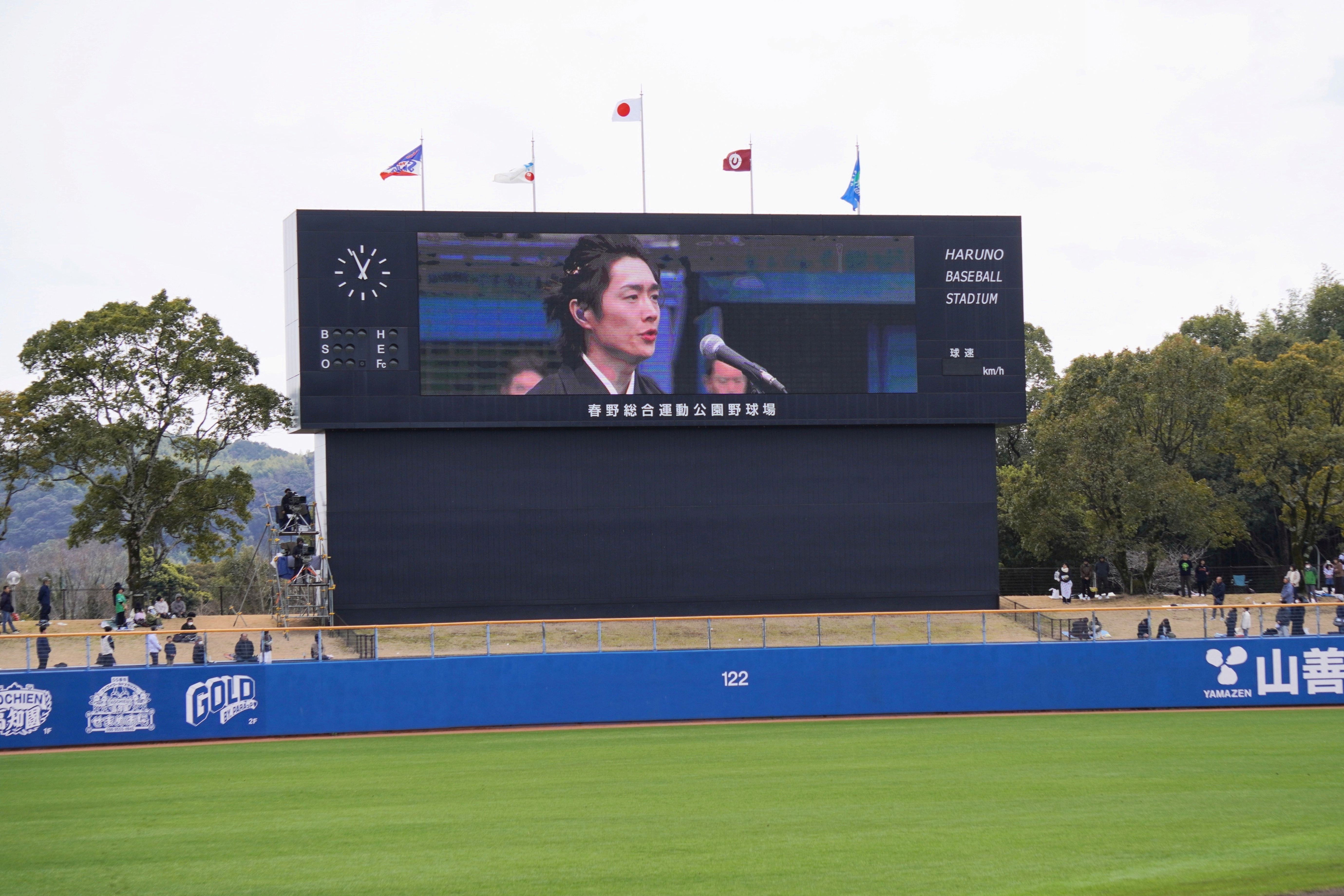 唯一無二の“ノックアウトボイス”で知られる歌手・真田ナオキが7日、高知県立春野総合運動公園野球場で行われたプロ野球オープン戦「埼玉西武ライオンズ VS 東京ヤクルトスワローズ」にて、自身初となる国歌独唱の大役を務めた。