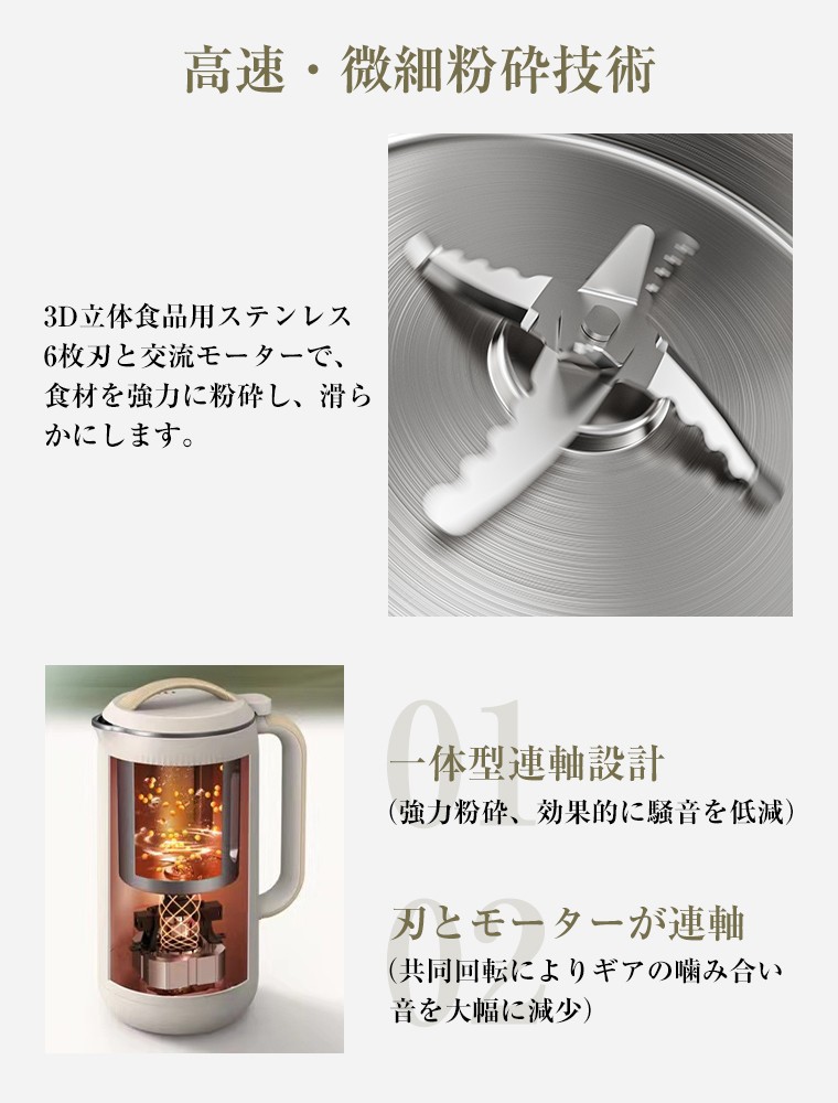 さらに調理プロセスの最適化により、忙しい朝でも、短時間で栄養豊富な豆乳を作ることができます。