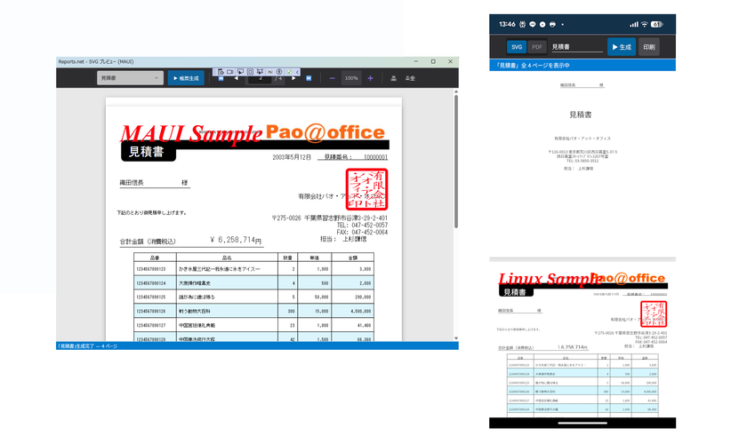 MAUIデスクトップアプリとスマートフォン(Android)でSVG帳票プレビュー