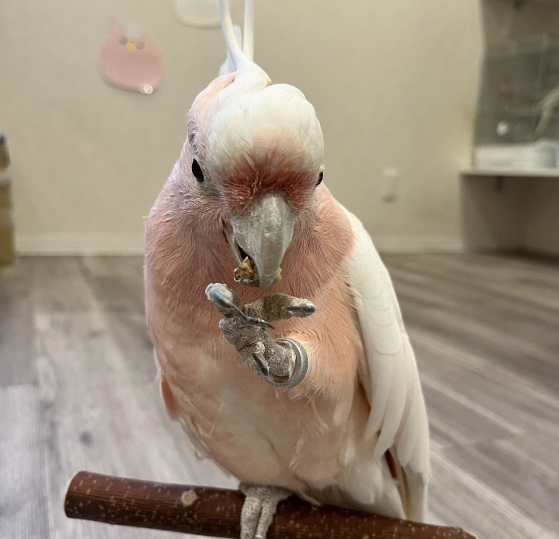 当店ふれあいスタッフ・クルマサカオウムの桃太郎くん
