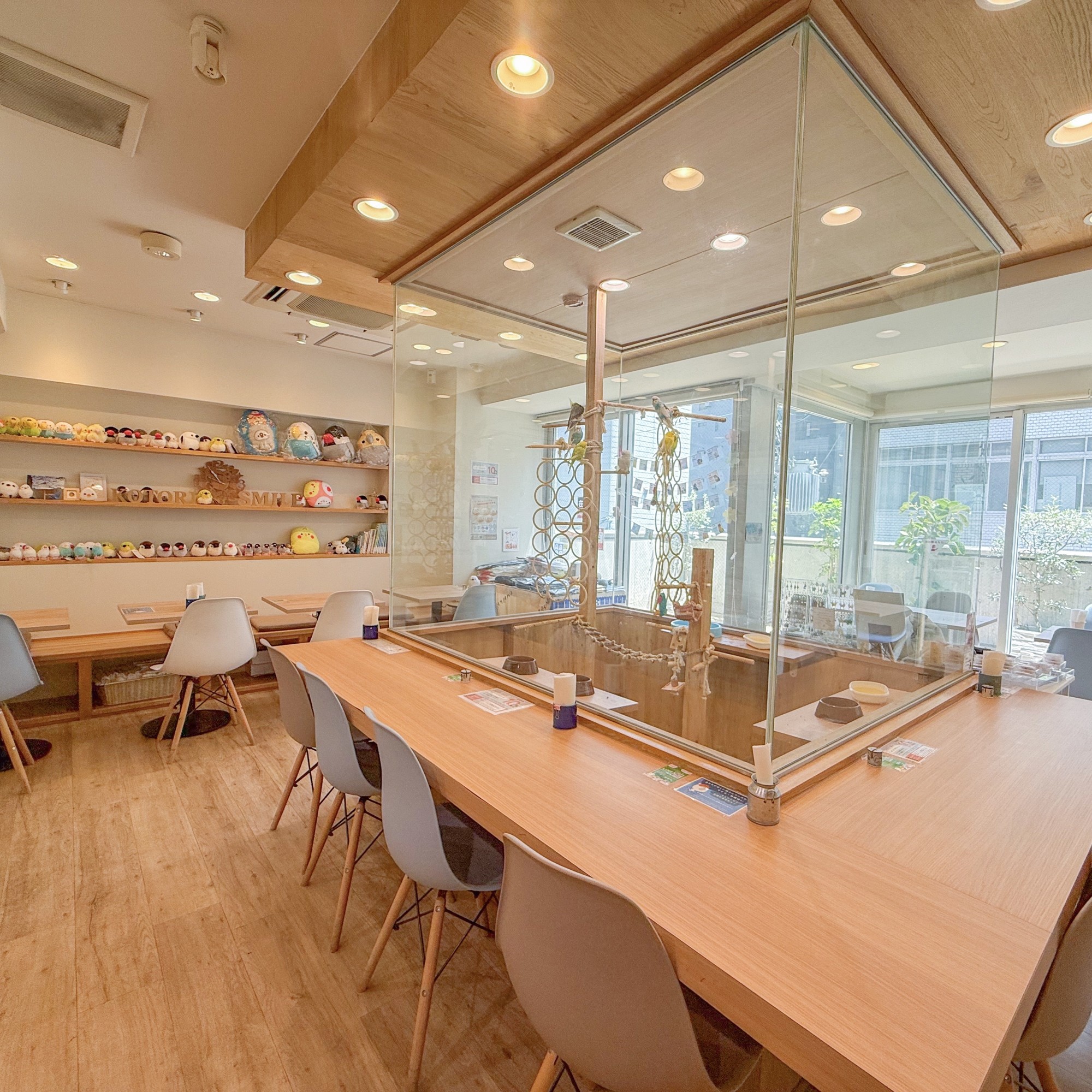 楽しく暮らしているインコたちを眺めながら、自慢のことりスイーツやご飲食を楽しめる、大阪 心斎橋にある「ことりすまいるカフェ」。