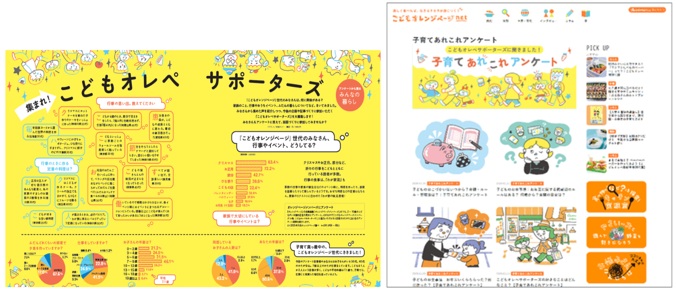アンケート結果をもとに、「こどもオレンジページ」誌面やWEBサイトで記事を掲載