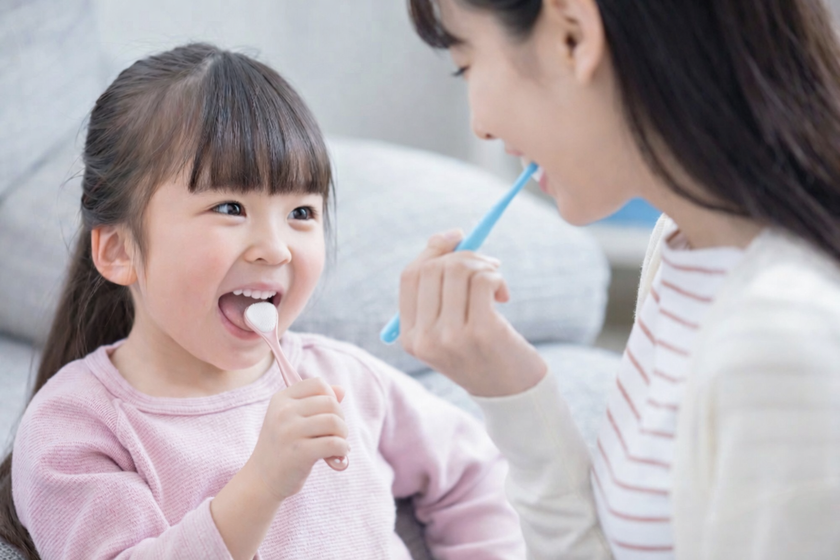そして、その舌苔を除去する最善の方法が、「舌ブラシを使用した舌磨き」です。子ども用の舌ブラシを使って、歯磨きの後など1日1分程度の使用で、舌苔を取り除くことができます。