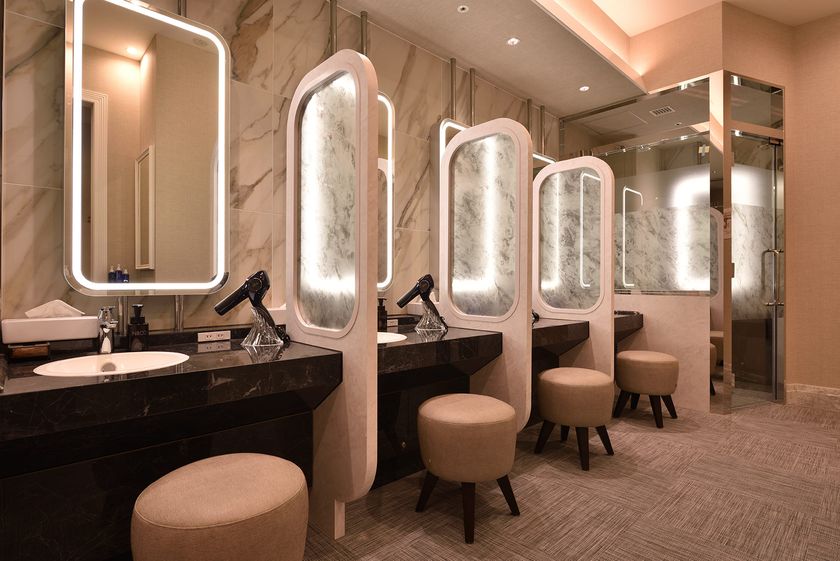 男女浴室のシャワーヘッドおよびパウダールームのヘアドライヤーには、美容ブランドReFa(リファ)の最新モデルを採用