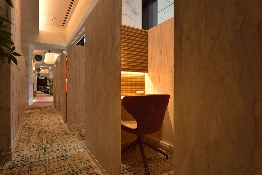 Free Wi-Fiと電源を備えた個人ワークスペースを11席用意し、サウナ後の休息とワークをシームレスにつなぐ環境を提供します。