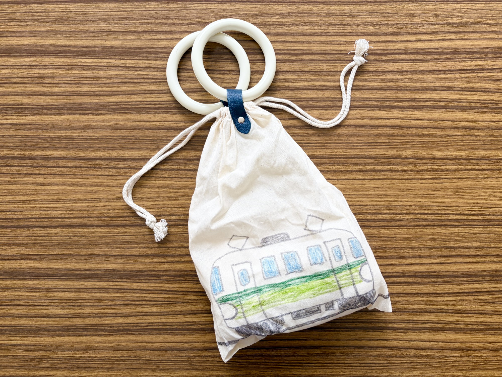 作成内容:参加者1名につき、つり革の輪部分2個を用い、つり革巾着