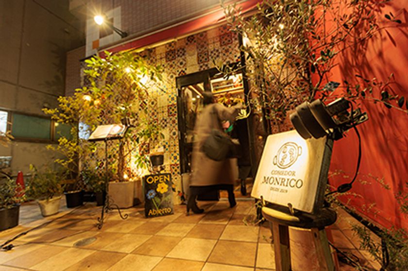 スペインタイルが映える店舗入口
