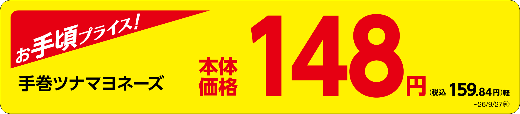「手巻ツナマヨネーズ」 価格訴求画像