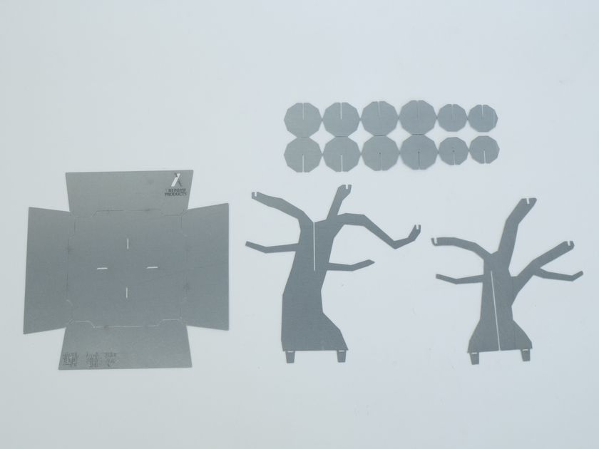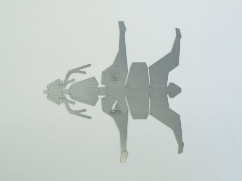 折り曲げるだけで立体的な姿が現れる、まさに鉄の折り紙です。
