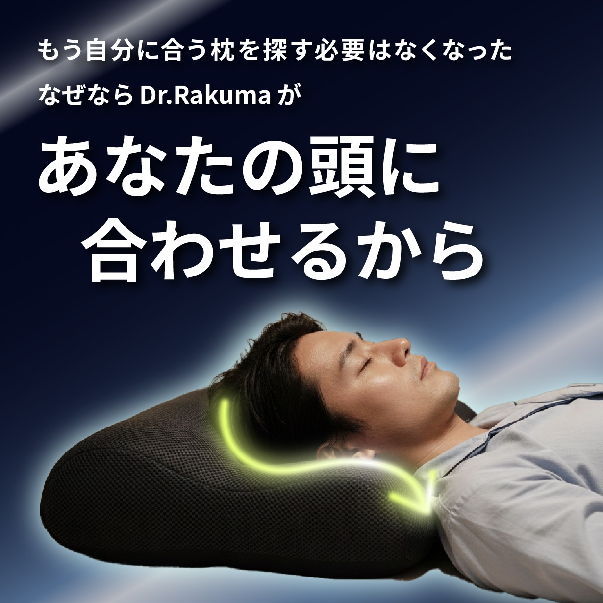 「Dr.Rakuma」(ドクターラクマ)は頭を乗せると、人間工学的なデザインであなたの頭に合わせて枕の形が変化、仰向けも横向きも自然に美姿勢を保ちます。頭を包み込むように、心地よい休息時間へと誘います。