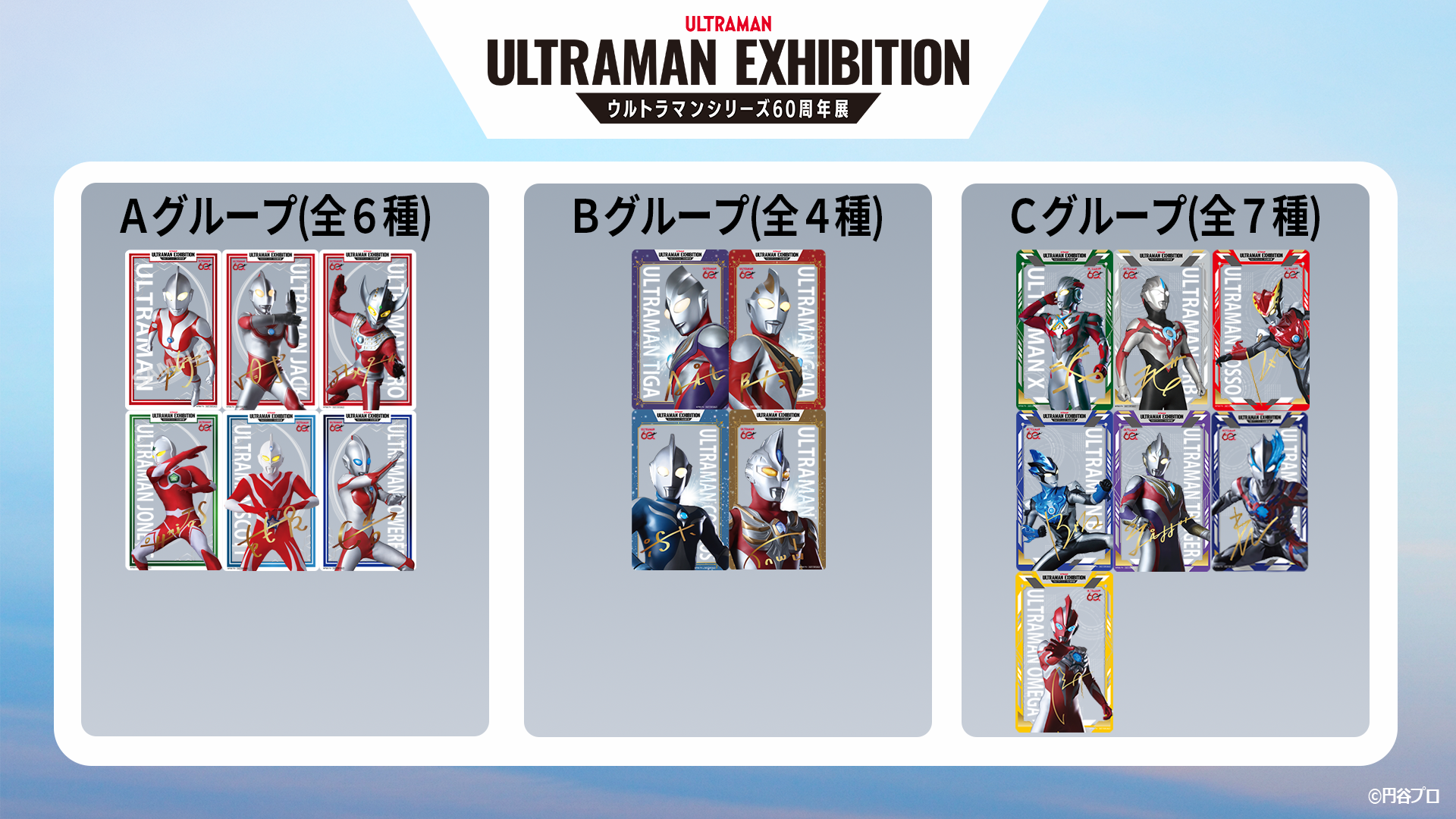 Cグループ:ウルトラマンエックス、ウルトラマンオーブ、ウルトラマンロッソ、ウルトラマンブル、ウルトラマントリガー、ウルトラマンブレーザー、ウルトラマンオメガ