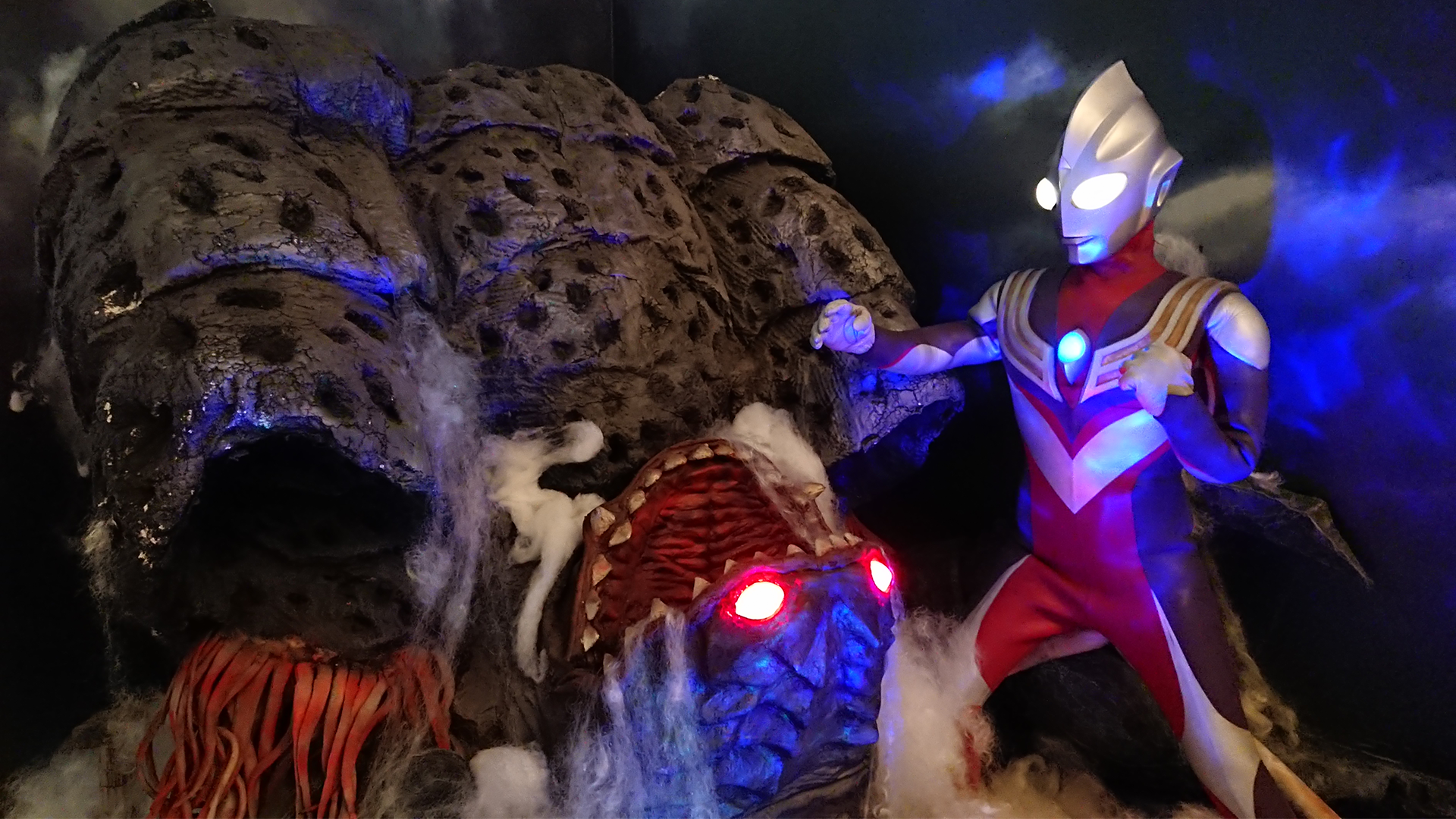 ウルトラマンシリーズを語る上で欠かすことのできない怪獣・宇宙人の存在。強敵たちが立ち並ぶ先には「ウルトラマン」の不屈の闘志と彼らを支える人々の想いを名シーンで再現した新表現のジオラマを展示します。