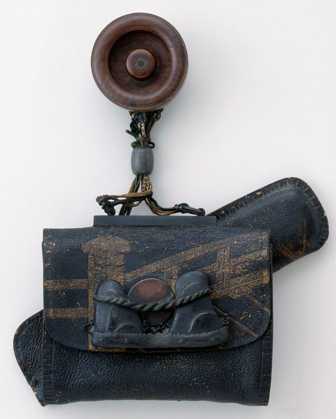 実物のたばこ入れと同じ素材と技法を用い、看板のように大きく仕立てたもの。