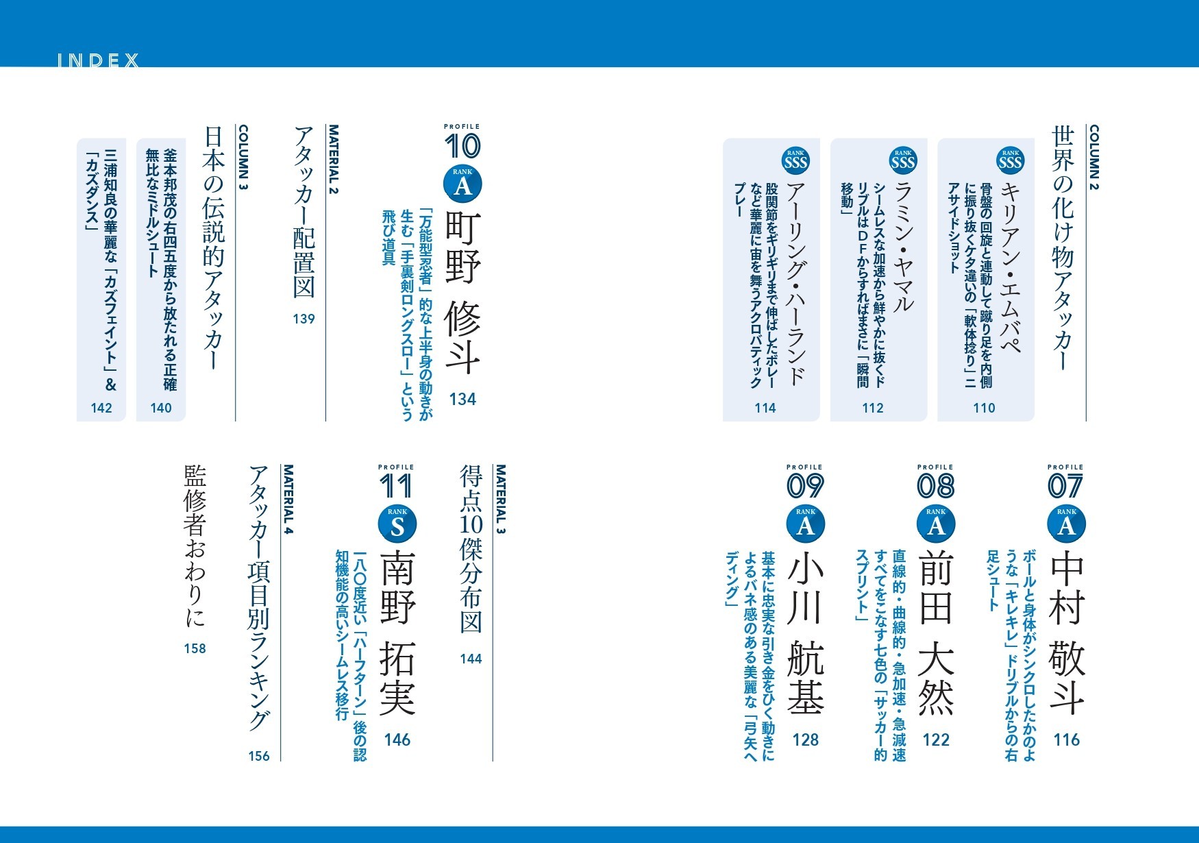 『サッカー日本代表 アタッカー動作解析図鑑』目次