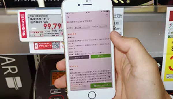 電子棚札にNFC(近距離無線通信)を搭載することで、ユーザーはスマートフォン(スマホ)をかざすだけでレビューが読める。ほかにも、商品スペックなどの詳細の確認や、購入したい複数商品の電子棚札を読み取ることで、商品同士の比較がその場でできる。