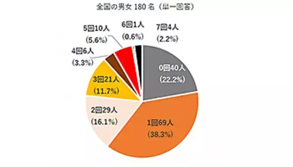 ウェブアンケートでは、テイクアウトの利用頻度を聞いたところ、緊急事態宣言発令前は60.6%が週に一度も利用していなかったが、緊急事態宣言発令後は22.2%まで減少し、約8割が週に1回以上テイクアウトを利用していた。週に3回以上テイクアウトを利用する人は、合計すると23.5%という結果になった。