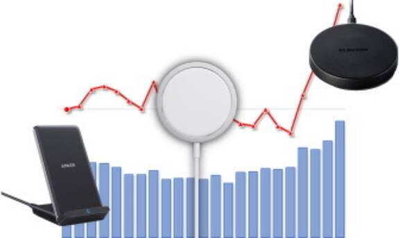 スマートフォンやタブレット端末などモバイルデバイス用の充電器・充電アダプタを集計したところ、ワイヤレス充電に対応した製品の販売数量指数が急増していることが、家電量販店・ネットショップの実売データを集計する「BCNランキング」から明らかとなった。