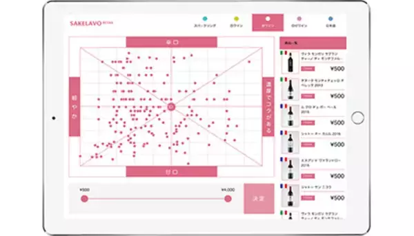 「SAKELAVO Retail」は、酒類総合情報センターから提供された約6000種もの酒(ワイン・日本酒)の味わいの数値データを用いて、小売店の棚に並んでいる商品の味を見える化し、「味わいから探す」ことのできるアプリケーション。