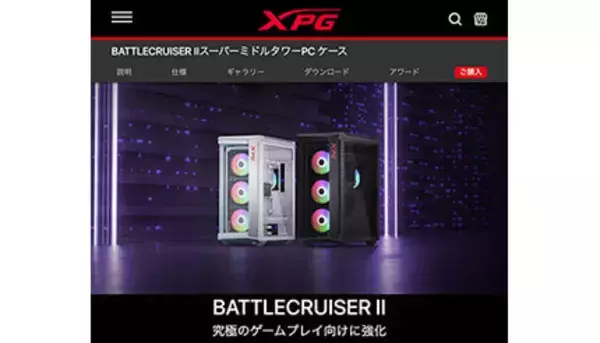 XPG BATTLECRUISER IIは、両サイド・フロント・トップの4面をガラスパネル仕様とした、Extended ATX規格対応のミドルタワーPCケース。
