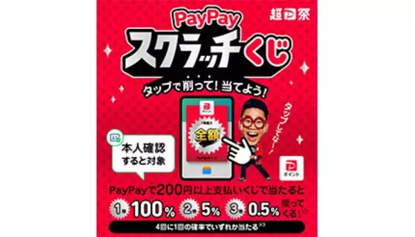 「超PayPay祭」は2月16日から 「ソフトバンク」のユーザーは必ず当たるスクラッチくじなど