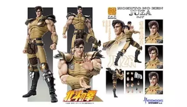 今回、発売される「超像可動『ジュウザ』」は、原哲夫氏による徹底した造形・彩色の監修で究極の造形美を実現するとともに、豊富な可動域で劇中の豪快な技の数々を再現できる。