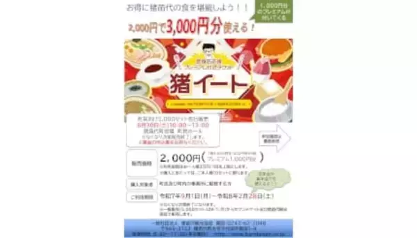 「猪イート」は、2000円で3000円分(500円券×6枚つづり)の食事券として、猪苗代町内の対象飲食店で利用することができる。