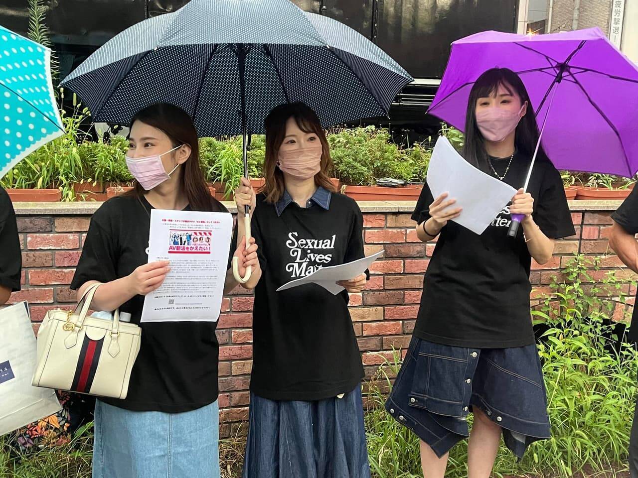女優さん達が取材に来て欲しいとツイートしていたので当サイトも3人に直撃することに。雨でずぶ濡れになる彼女たちに今回自ら立ち上がった理由を聞いてみた。