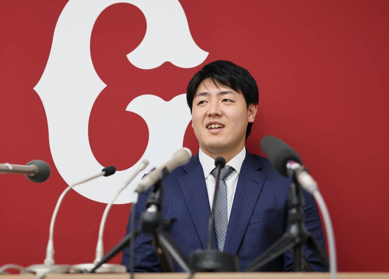岡本は智弁学園から2014年ドラフト1位で巨人に入団。4年目からレギュラーに定着し、同年からは6年連続30本塁打以上を記録。不動の4番打者として活躍してきた。通算成績は1.089安打、248本塁打。