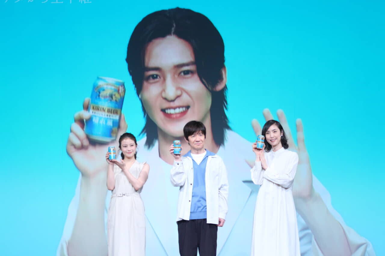 3月30日、「キリンビール 晴れ風」のブランド初フルリニューアルを記念したイベントが都内で開催され、ブランドアンバサダーの内村光良、天海祐希、今田美桜が姿を見せた。そして映画『SHOGUN 将軍』シーズン2の撮影でカナダに長期滞在中の目黒蓮は現場から生中継で参加した。