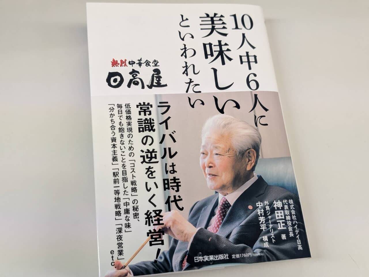 日高屋の創業者であり現在も代表取締役会長を務める神田正氏が、この3月に刊行されたばかりの著書『10人中6人に美味しいといわれたい』(日本実業出版社、中村芳平・構成)だ。