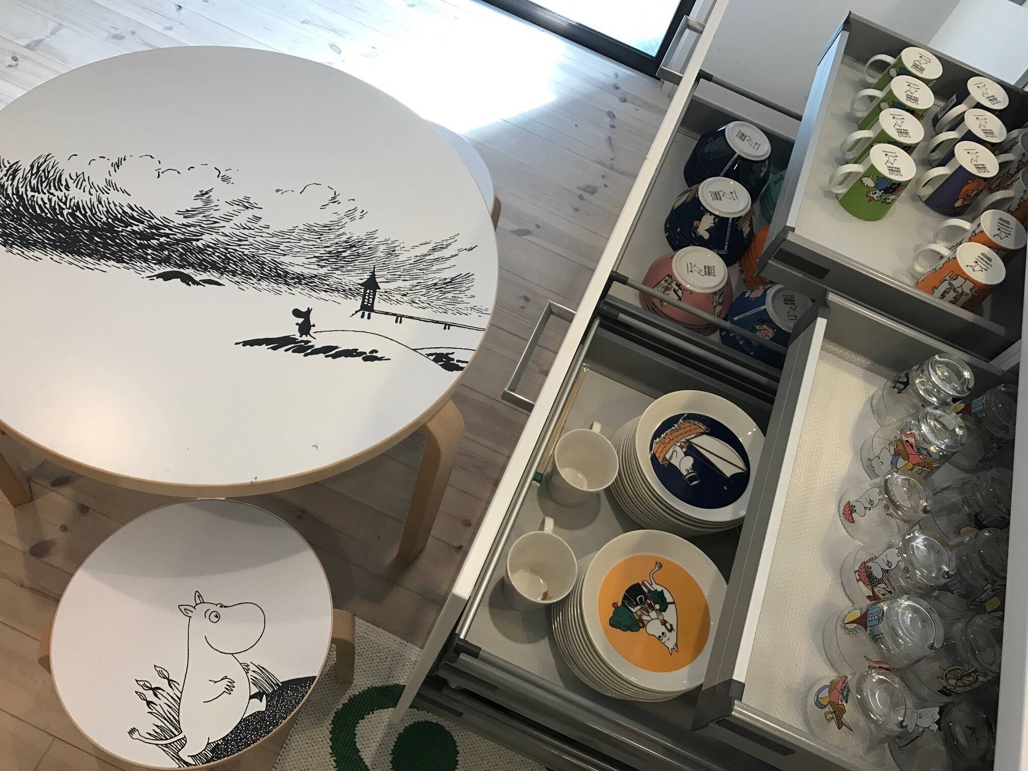 まず驚かされるのが、ムーミンの多さ。同園ではムーミンキャラクターとライセンス契約を結んでおり、テーブルから照明、コップにいたるまで、園内のあらゆる所にあの見覚えのあるキャラクターが顔を出す。