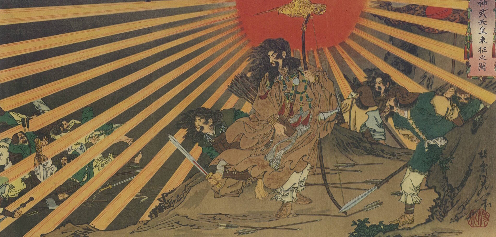 「八咫烏」は太陽にいる三本足の烏を表すが、実際には動物のカラスではなく、その名が鴨健角身命(かもたけつのみのみこと)といわれる人物で、天孫族の鳥トーテミズムと太陽神信仰に基づく通称にすぎない。その別名は多く、少彦名(すくなひこな)神とか三島溝咋耳(みしまみぞくいみみ)命、天日鷲(あめのひわし)命ともいうが、東征当時の該当者は生玉兄日子(いくたまえひこ)命であり、鴨健角身命の孫であった。