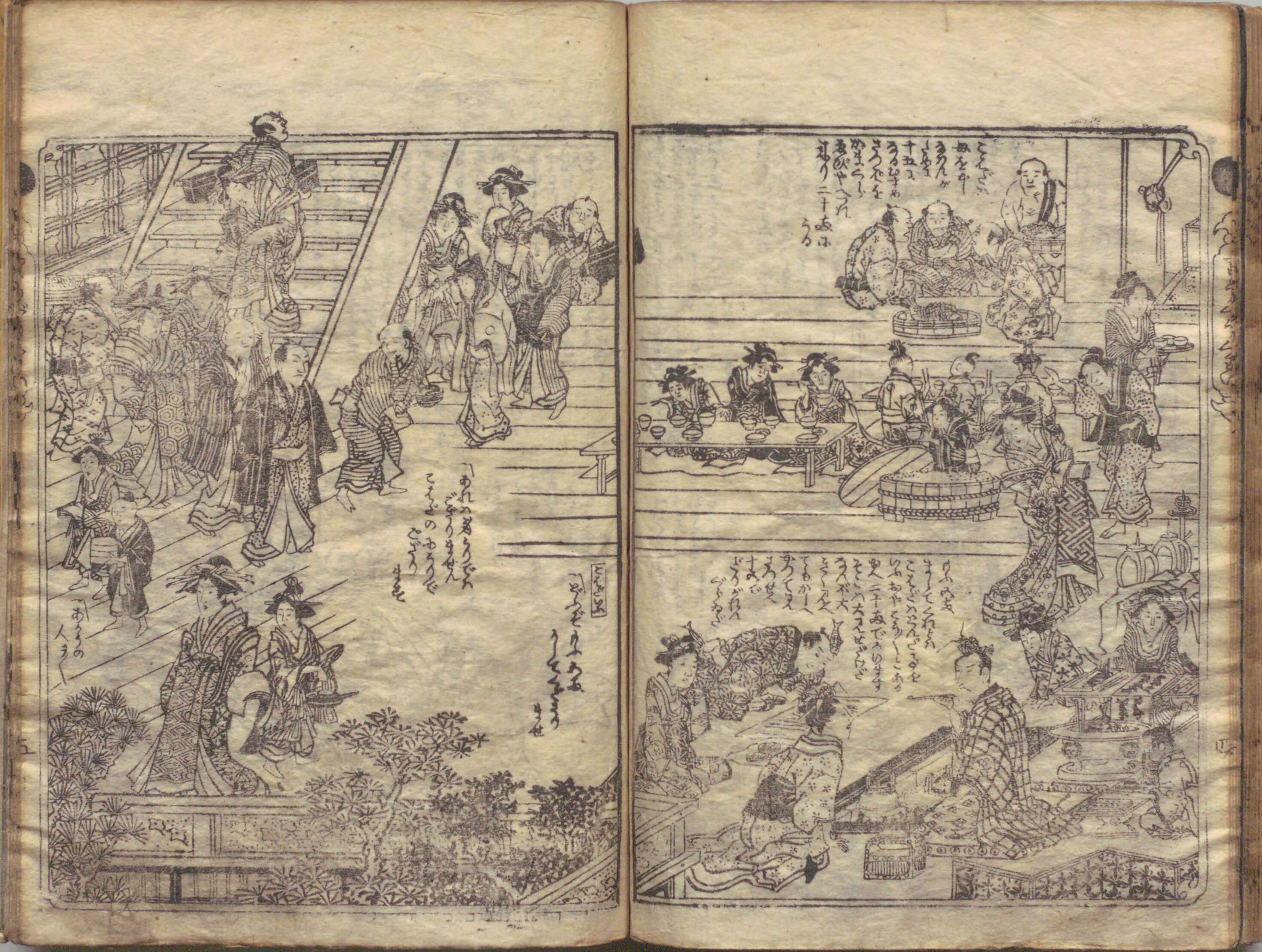 図1は、妓楼の朝食の光景である。ただし、遊女が起床するのは四ツ(午前十時頃)だから、妓楼の本格的な朝は四ツだった。当然、朝食も四ツ以降となる。