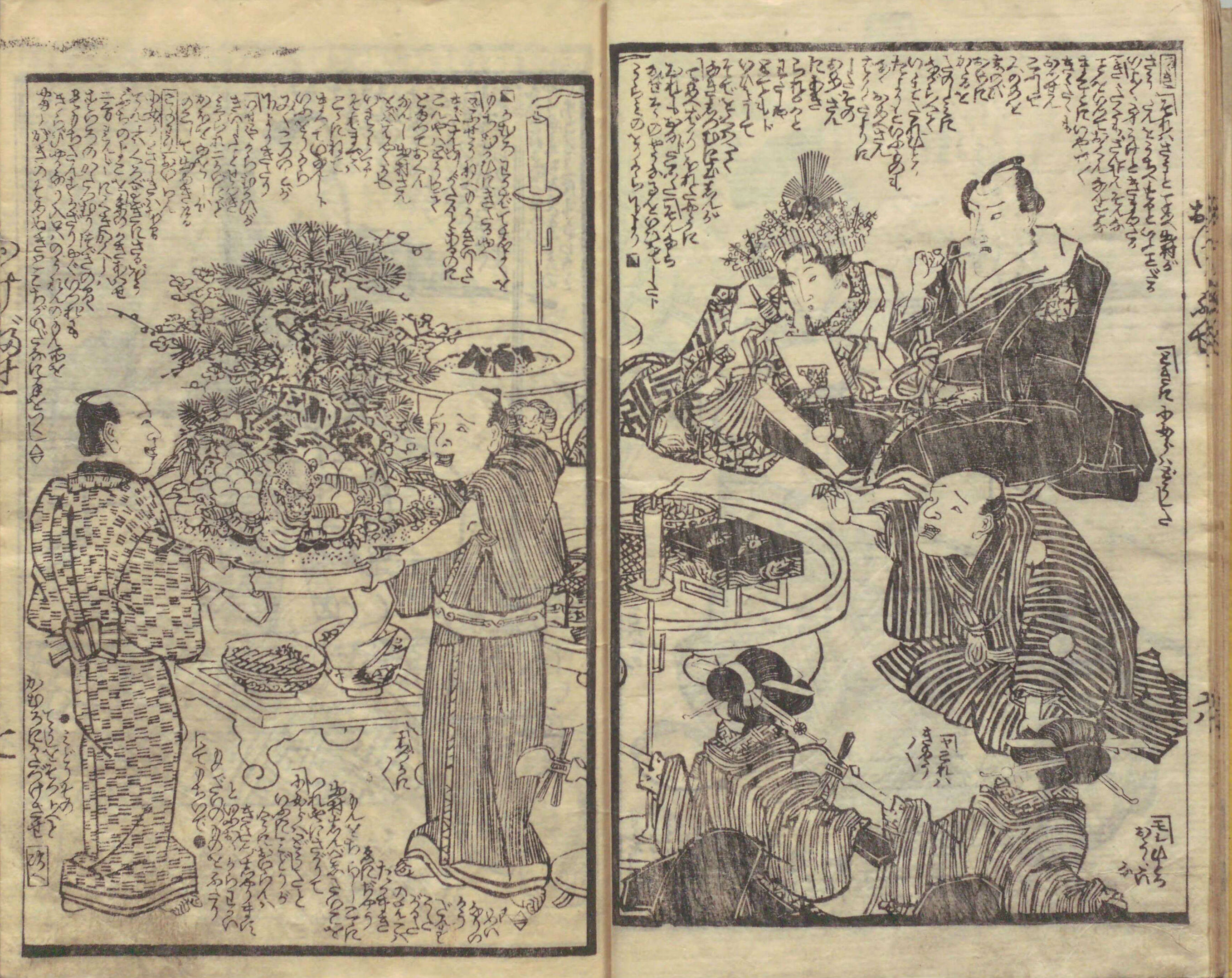 豪華な料理が置かれているが、これは台屋という仕出料理屋から取り寄せた物で、台の物といった。もちろん、法外な値段だったが、こうした台の物を気前よく取り寄せるのが男の見栄でもあった。