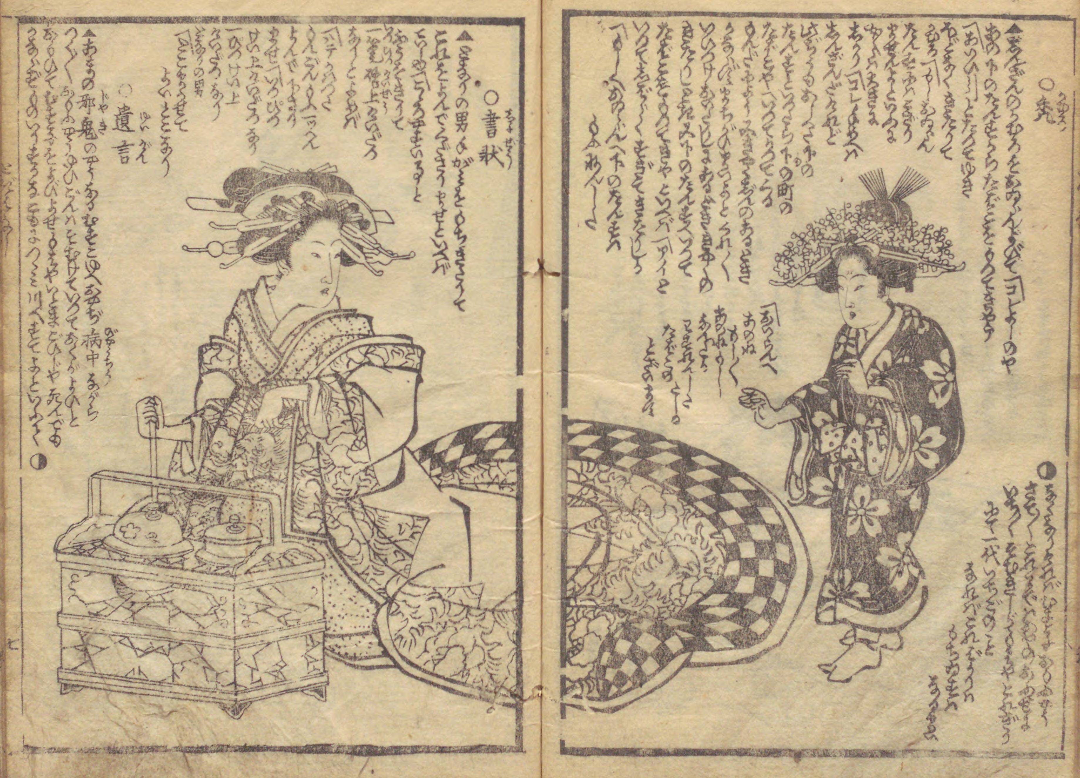 写真を拡大 図1『浮世学者御伽噺』(志満山人著、文政5年)図1では、花魁に用事を命じられた禿が、戻ってきて――