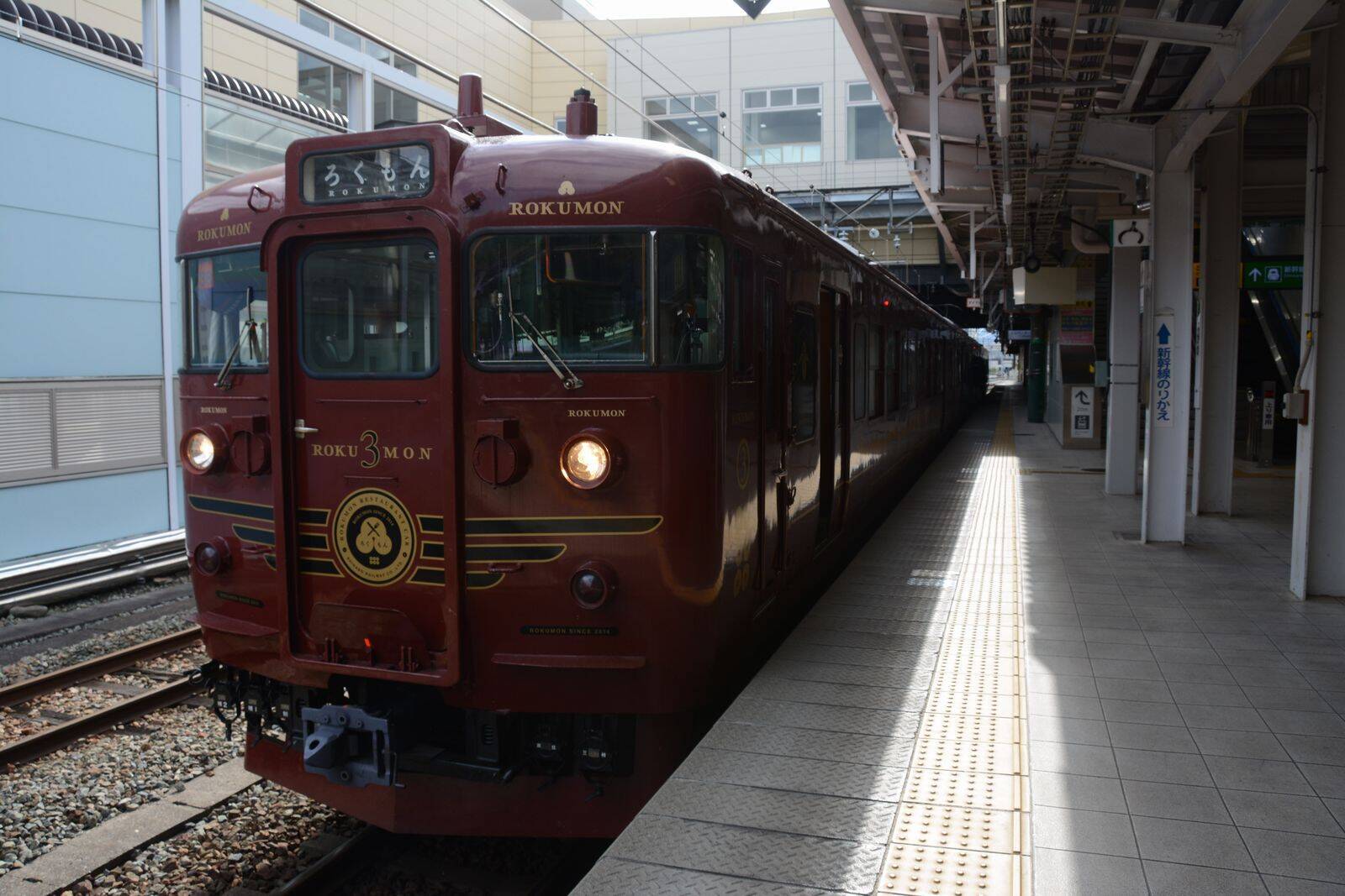 通常、軽井沢駅~長野駅間で食事付き観光列車「ろくもん」を運行しているしなの鉄道は、「ろくもん」の特別運行によるユニークなプランをいくつも企画している。今回は2019年1月と2月に北しなの線の長野駅~黒姫駅間で初の試みとなる「北信濃雪見酒プラン」を発売するにあたり、試乗会を行った。