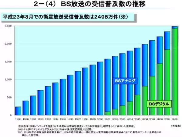 「実は、1971年度を境に、毎年収入の伸びが低下していきます。テレビの普及自体が限界に近づく中で、増収の頼みの綱である地上波は、白黒からカラー契約への切り替えが頭打ちになりました。受信料不払い世帯への徴収には限界がありましたが、89年6月にBSが本放送を開始し、カラー放送以来の新しい収入源になったのです」
