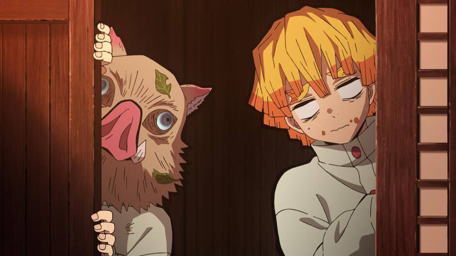 那田蜘蛛山で刀が折れてしまった善逸と伊之助の新しい刀が届いた。はじめは炭治郎の刀を作った鋼鐵塚(はがねづか)のほうがキレていて伊之助の刀と作った鉄穴森(かなもり)が宥めていたが、伊之助が作ったばかりの刀を石でギザギザにすると「ぶっ殺してやる!このクソガキ」とガチギレしていた(それは怒る)。