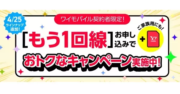 ソフトバンクは4月25日、ワイモバイルオンラインストアにて、現在ワイモバイル契約中のユーザーを対象に、2回線目以降の契約時に「iPhone 13 128GB」や「moto g64y 5G」をお得に提供するキャンペーンを開始した。新規契約や他社からののりかえ(MNP)で大幅な割引価格で購入できる。