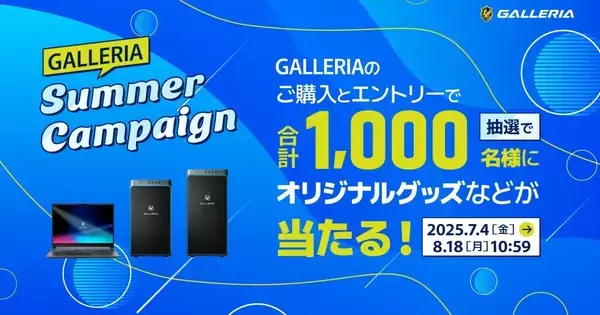 サードウェーブは、全国のコンピューターショップドスパラ各店舗、およびドスパラ通販サイトにて、オリジナルグッズなどが合計1,000名に当たる『GALLERIA SUMMER CAMPAIGN』を2025年7月4日に開始した。