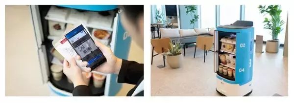 また、配送ロボットがエレベーターなどのファシリティと自動連携し、ローソン店舗の商品をオフィスの執務室内までデリバリーしたり、オフィス内を回遊販売したりすることで、フロアを移動することなく商品の購入が可能に。店舗やエレベーターの混雑、店舗までの移動時間や商品購入までの待ち時間のストレスを感じることなく買い物ができる環境を整えることで、オフィスワーカーの生産性向上が期待できるという。