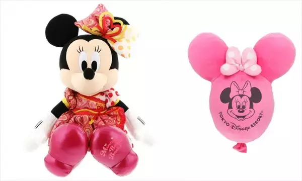パークで活躍するアイテムが多数展開され、本イベントの新しいコスチュームを着たミニーマウスの「ぬいぐるみ」や、折りたたんでバッグにつけて持ち歩けるハート型の「ポータブルクッション」、ハート型のカバーに収納できる「ブランケット」などがラインナップとなっている。