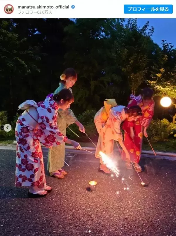 乃木坂46の秋元真夏が、21日に自身のインスタグラムを更新。同グループの齋藤飛鳥、樋口日奈、和田まあやと浴衣姿で花火を楽しむ様子を公開した。