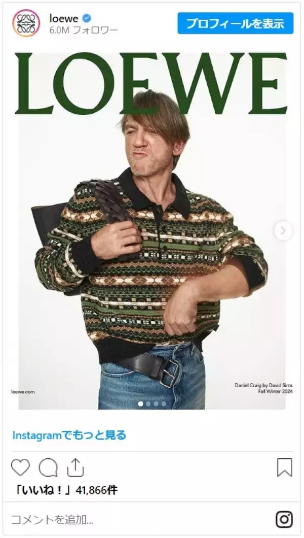 ロエベのインスタグラムには、「ボンドからクールなおじさんに変身」「『サタデー・ナイト・ライブ』かと思った」「この髪!」「全然わからなかった」などとコメントが寄せられている。