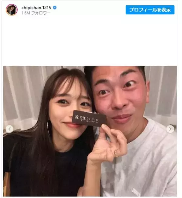「出会った頃から何も変わらないけど シワの数と家族の数が増えたね これからも普通の変わらないふたりでいよう」と太田へ愛溢れる言葉を贈った近藤。2人の手には「9」を象ったろうそくを飾ったパンダ型のケーキが。チョコレートのプレートには「9年記念日」と書かれている。「パンダの顔のチョコレートは姉妹に全部食べられました笑」と明かした近藤だった。