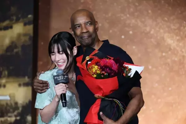 その後、橋本が登場して来日キャストに花束を贈呈。橋本は「本当に緊張していて」と白い歯を見せ、謎の男マクリヌスを演じたデンゼルに抱き寄せられると「ヤバい! ヤバい! ダメダメ!」と歓喜の悶絶。