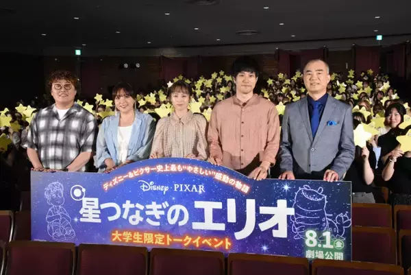 ディズニー&ピクサーによる劇場最新作『星つなぎのエリオ』の大学生限定トークイベントが23日、都内にて開催。日本語版声優を担当する清野菜名、松山ケンイチ、野呂佳代、マユリカ中谷、野口聡一が登壇し、悩める学生たちにメッセージを贈る場面があった。