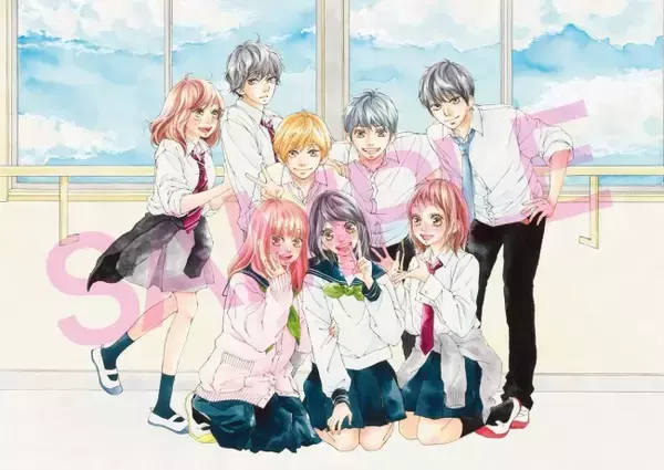 解禁されたコラボキャラクタービジュアルは、青春三部作の『アオハライド』『ストロボ・エッジ』と本作に登場するキャラクターが競演を果たした、咲坂描き下ろしによる史上初の夢のコラボレーションビジュアル。本作の朱里、由奈、理央、和臣が、『ストロボ・エッジ』の仁菜子と蓮、『アオハライド』の双葉と洸に挟まれる形で、8人が記念写真を撮っている様子が切り取られており、咲坂作品を1つでも読んできた多くの女性たちには大興奮間違いなしの1枚となるだろう。