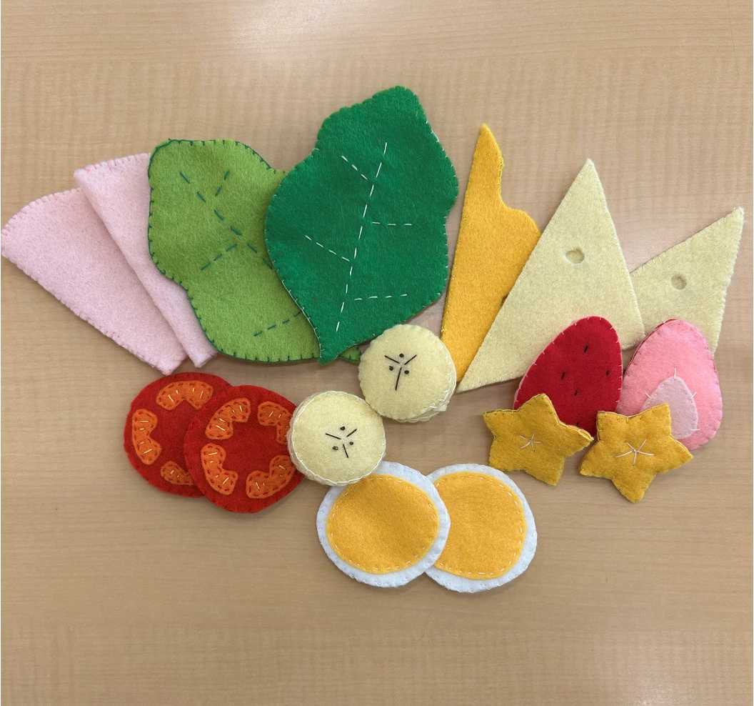 <評価ポイント> 縫製が丁寧で、しっかりとした作りが印象的。丈夫さが重要なポイントとして考えられており、何度も遊べる安心感がある。トングの発想が秀逸で、使いやすさに工夫が施されている。豊富なパーツを組み合わせることで遊びの幅が広がり、子どもたちの思考を刺激する内容となっている。