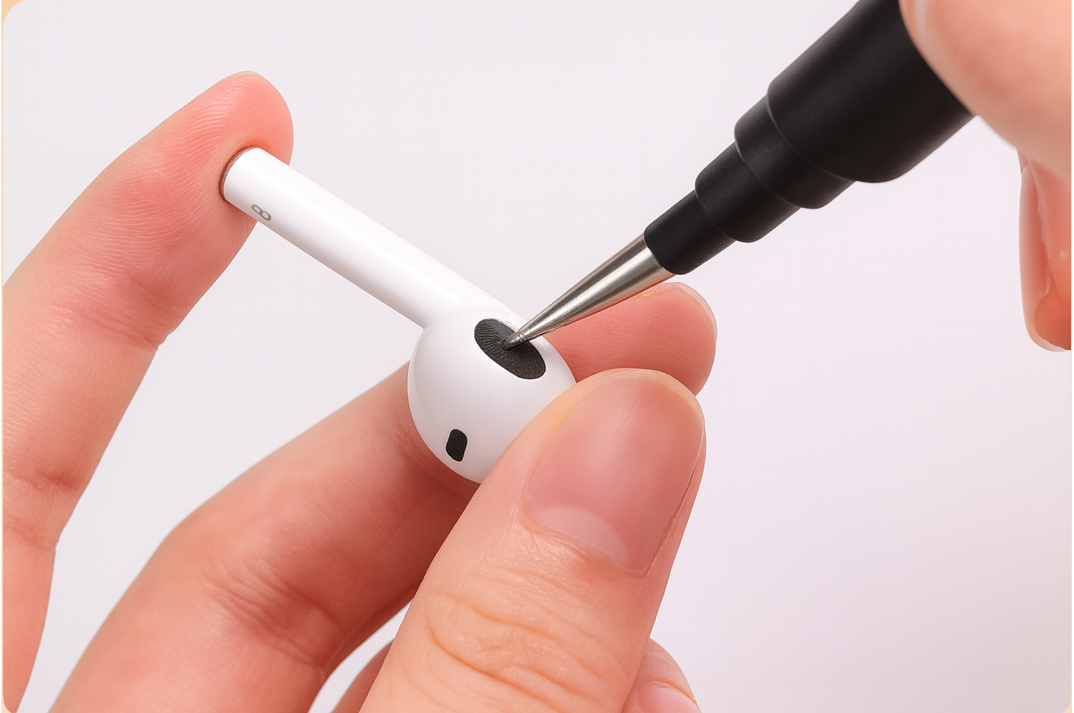 ワイヤレスイヤホンのメッシュ部分など、微細な隙間に。